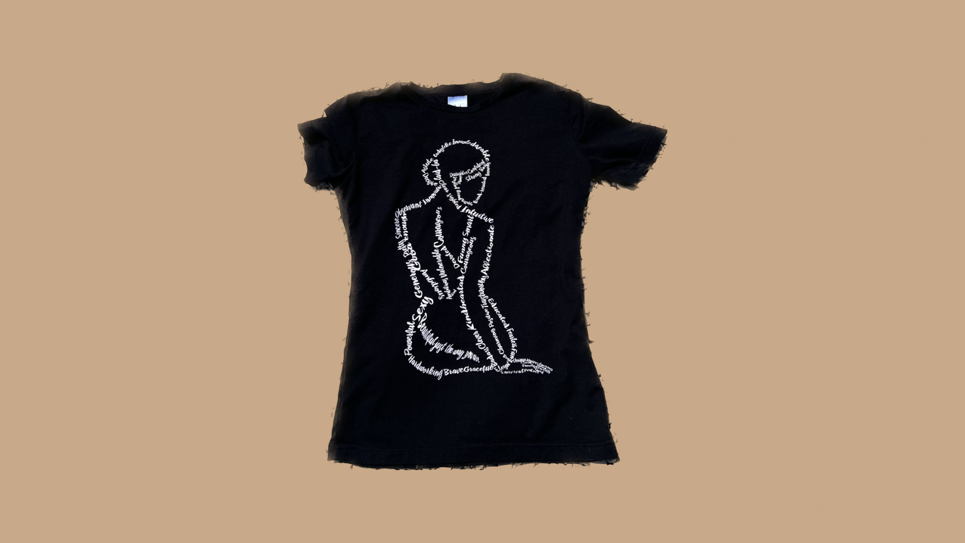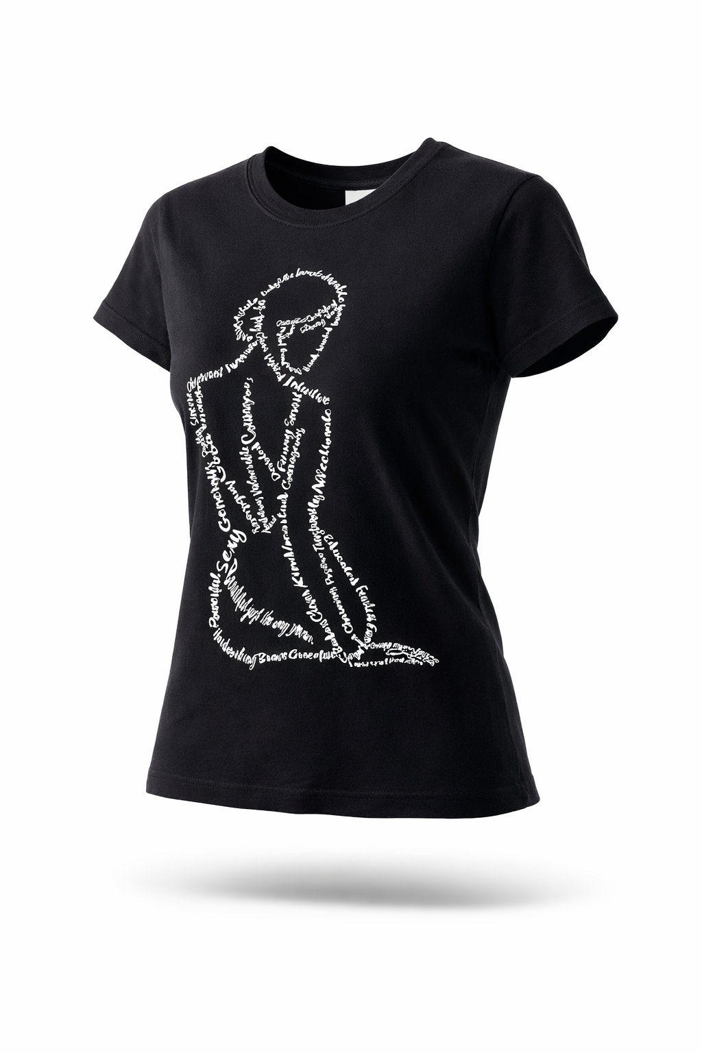 Super myk og stretchy T skjorte i 95% bomull og 5% spandex. Kvinnen på skjorte består av lun positive ord. Gi deg selv en påminnelse eller noen du er glad i.