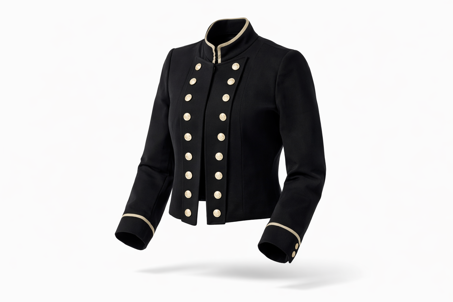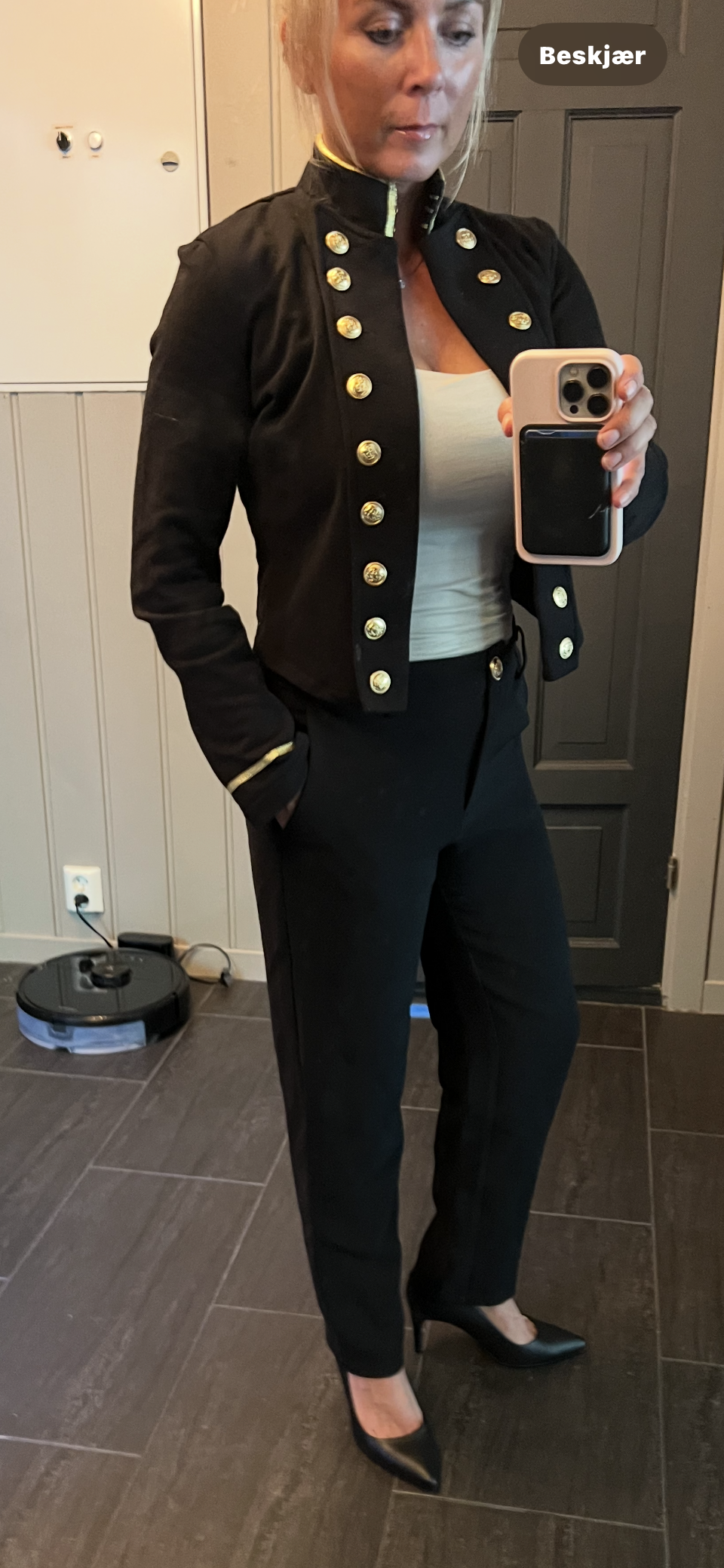 Vakker militærinspirert jakke. 100% bomull. Med vakre gull detaljer.
